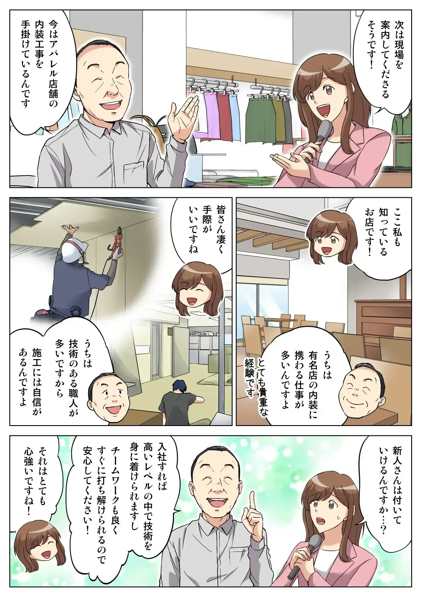 弊社では有名企業の現場を担当することもあります。他の仕事ではできない貴重な経験であり、それだけやりがいを持って働けるでしょう。仕事の楽しさや面白さを実感できるのは、この仕事の醍醐味でもあります。仕事を通して成長していきたい方に向いている職場環境です。